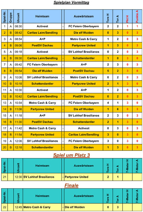 und Tabelle der Hallenturniers in Dachau 2005